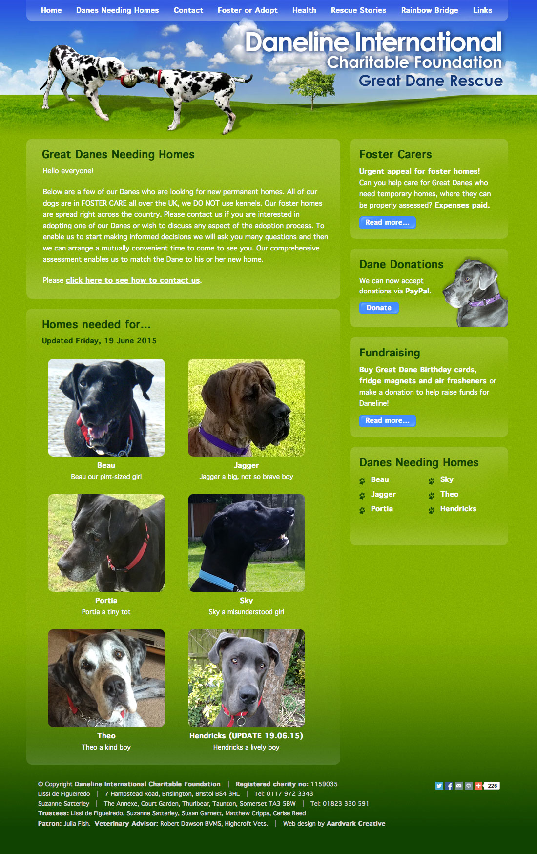 The site is constantly evolving, with new Danes for adoption, rescue stories and Great Dane health advice, together with a memorial 'Rainbow Bridge' area, to remember those furry friends who have passed on.